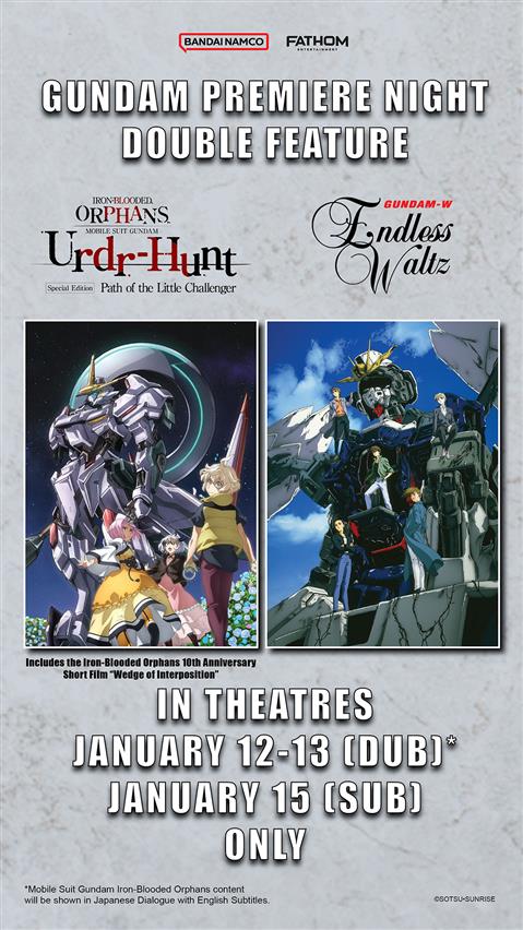 Get ready for the first-ever Gundam Premiere Night! This exclusive event celebrates the legendary franchise with a double-feature debut. First, experience Mobile Suit Gundam: Iron-Blooded Orphans – Urdr-Hunt: Path of the Little Challenger, paired with the special 10th Anniversary short film Wedge of Interposition (SUBBED). Followed by the epic Mobile Suit Gundam Wing: Endless Waltz – Special Edition – remastered in 4K and featuring newly added animated scenes. Plus, each film will include a one-of-a-kind introduction created just for this premiere night. Don’t miss your chance to be part of Gundam history!